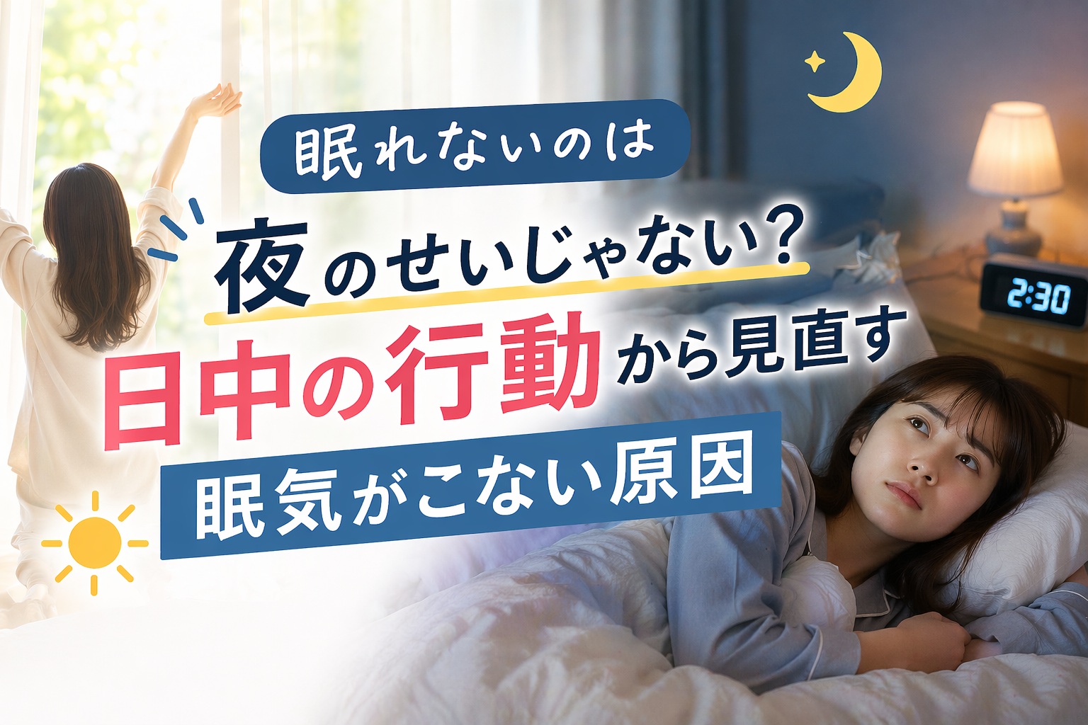 この記事では、「眠気がこない原因」を整理しながら、日中の行動を振り返るヒントと、無理なく取り入れられる改善策をお伝えします。