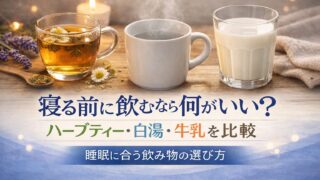 寝る前に飲むもの、なんとなくで選んでいませんか?「リラックスしたいからハーブティーにしよう」「なんか体によさそうだから白湯かな」……そんなふうにイメージで決めている方、実は多いんじゃないかと思います。でも、飲み物って種類によって体への作用が...